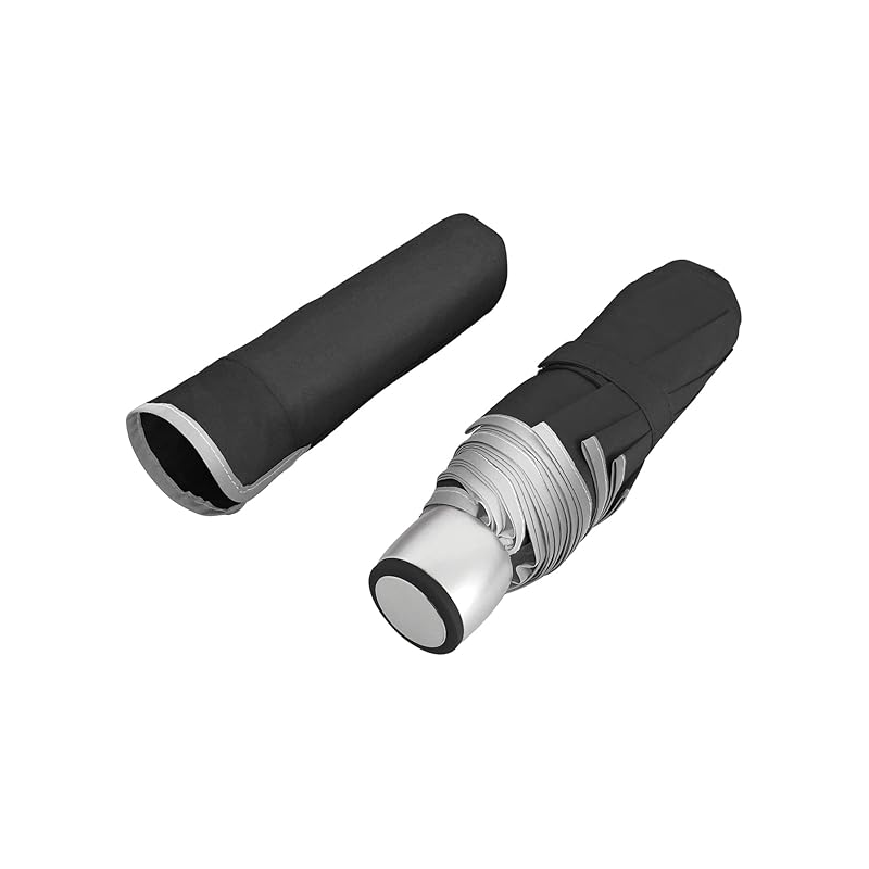 Ombrello Perletti Unisex, Pieghevole da borsa e zaino, Apertura Manuale, 8 Bacchette in fibra di vetro, Struttura Antivento, Tessuto poliestere pongee, Impugnatura tonda argento. Colore nero. Con difetti sull'impugnatura.