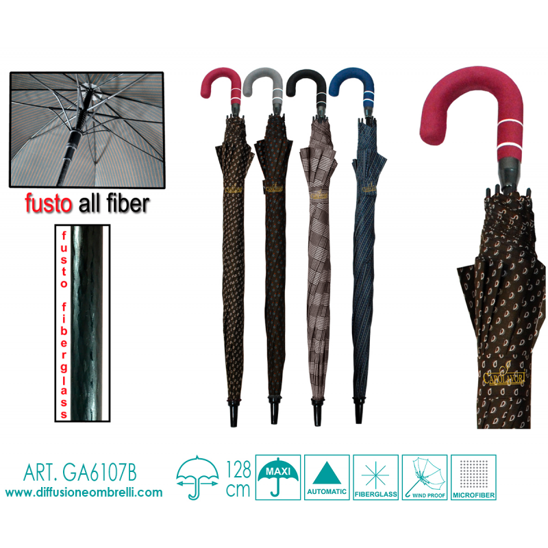Ombrello Uomo I Capolavori, Grande, 8 Stecche da 69 cm, Apertura Automatica con Pulsante, Leggero, Fantasia Uomo, Struttura Antivento Rinforzata con Fibra di Vetro, con Puntine Fissate e Arrotondate che Rendono l'Ombrello più Sicuro e Robusto, Tessuto Microfibra Idrorepellente, Impugnatura curva in EVA Vendita B2B di ombrelli in Italia e in Europa, riservata a rivenditori del settore.