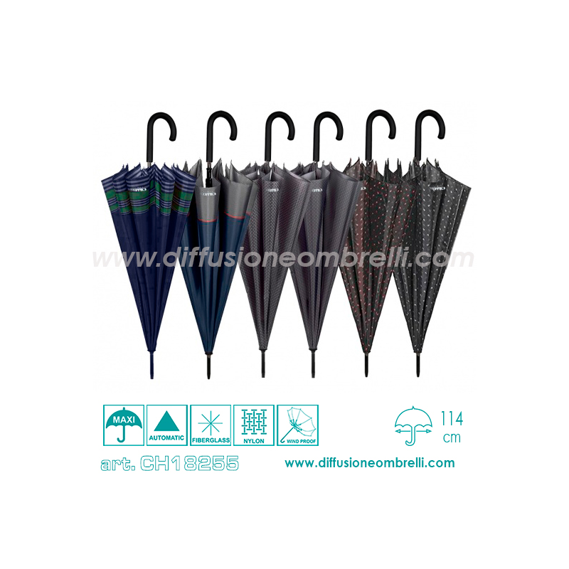 Ombrello Charro, Golf con apertura automatica, bacchette in fiberglass, antivento, tessuto nylon.