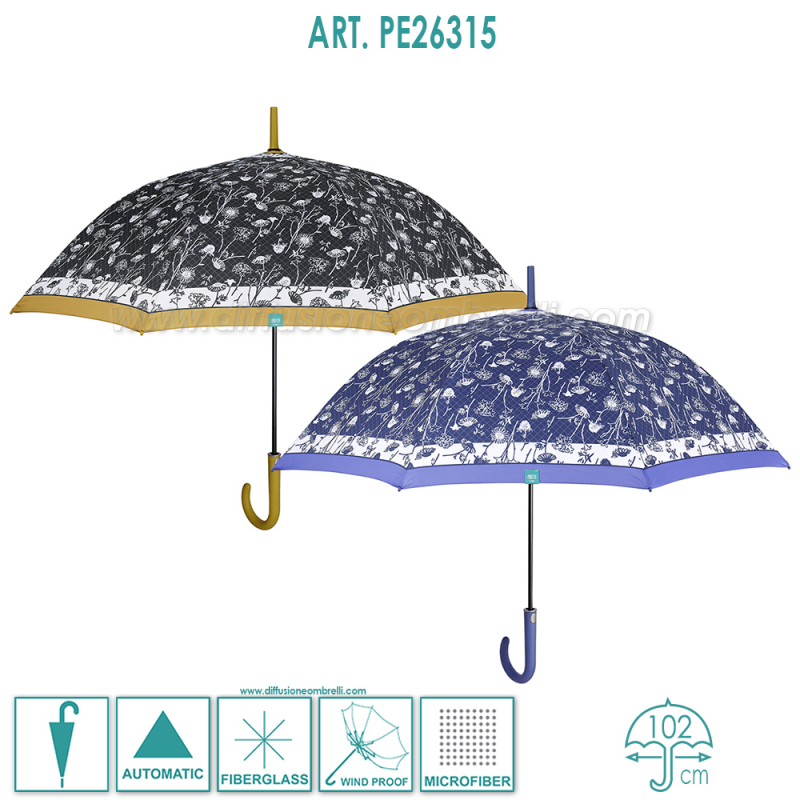 Ombrello Donna Classico, 8 Bacchette da 61 cm, Apertura Automatica, Fantasia floreale, Antivento, Microfibra.