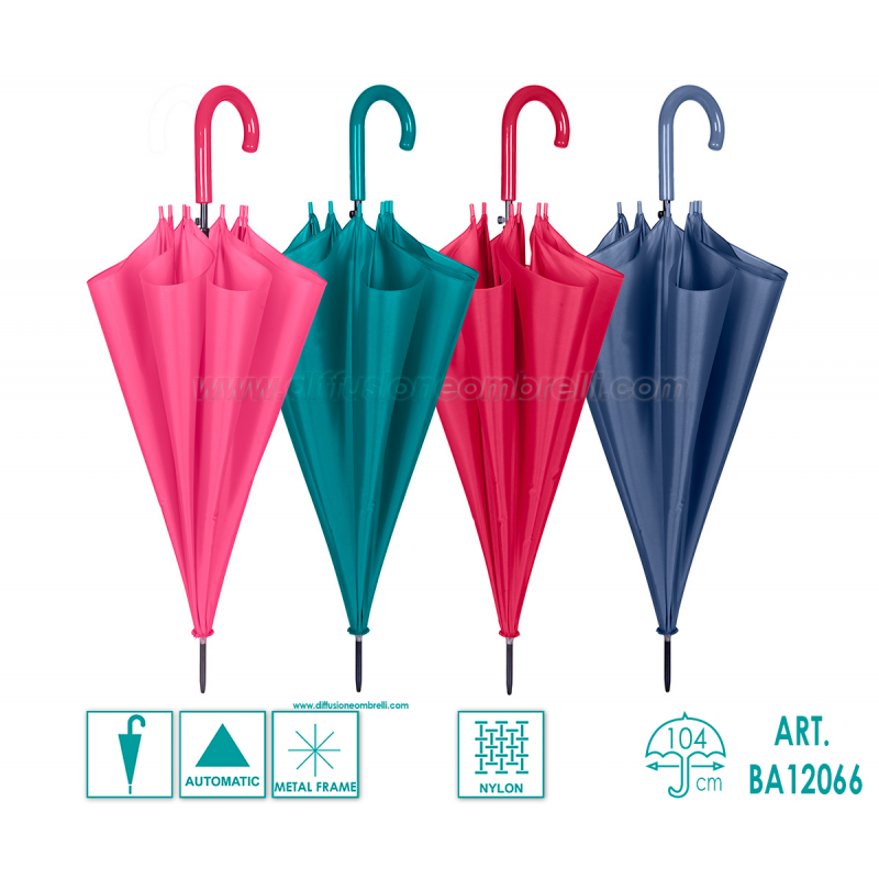 Ombrello Donna Classico, 8 Bacchette da 61 cm, Apertura Automatica, tinta unita.