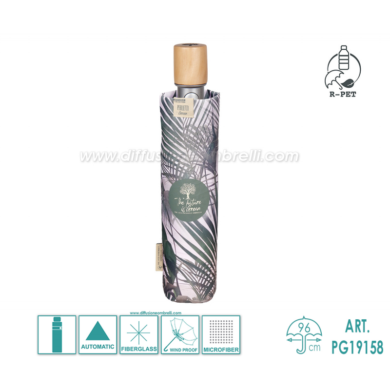 Ombrello Perletti Green Donna Pieghevole, 8 Bacchette da 54 cm in Fiberglass, Apertura Automatica con Pulsante, Asta in 3 Sezioni, Fantasia kenzia, Sistema Antivento, Tessuto in Microfibra ad Alta Resinatura Riciclato