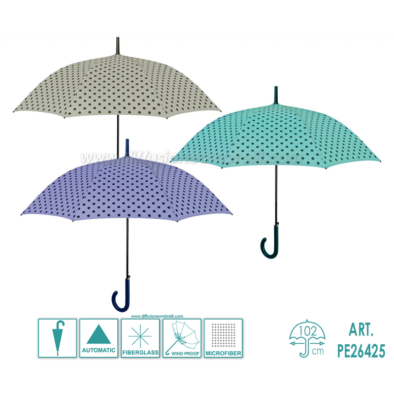 Ombrello Perletti Time Donna Classico, 8 Bacchette da 61 cm in Fiberglass, Apertura Automatica con Pulsante, Fantasia pois, Sistema Antivento, Tessuto in Microfibra ad Alta Resinatura