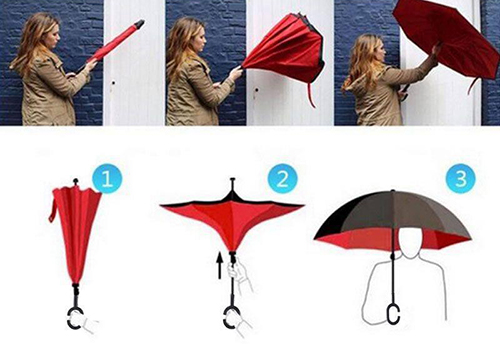 Grazie all’innovativa chiusura inversa l’ombrello reversibile, trattiene la pioggia al suo interno, permettendoti di entrare e uscire dall’auto senza più bagnarti.