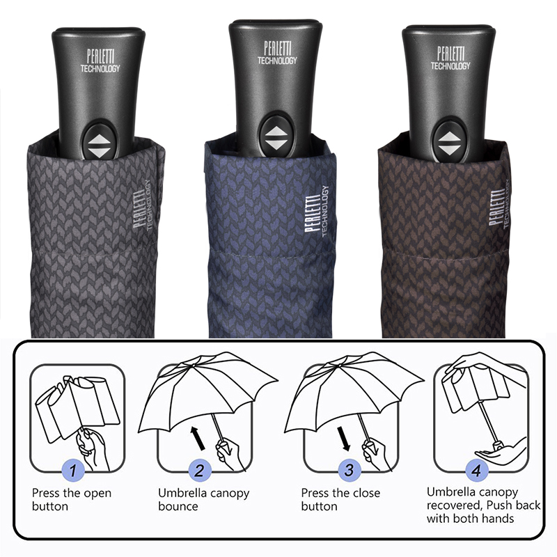 Il massimo della comodità è garantito da questa tecnologia all’avanguardia che consente di aprire l’ombrello spingendo un pulsante e richiuderlo premendo semplicemente lo stesso pulsante.