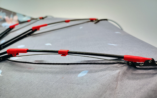Speciali bacchette di alta qualità in fibra di vetro che rendono l’ombrello leggero e nello stesso tempo resistente alle raffiche di vento.