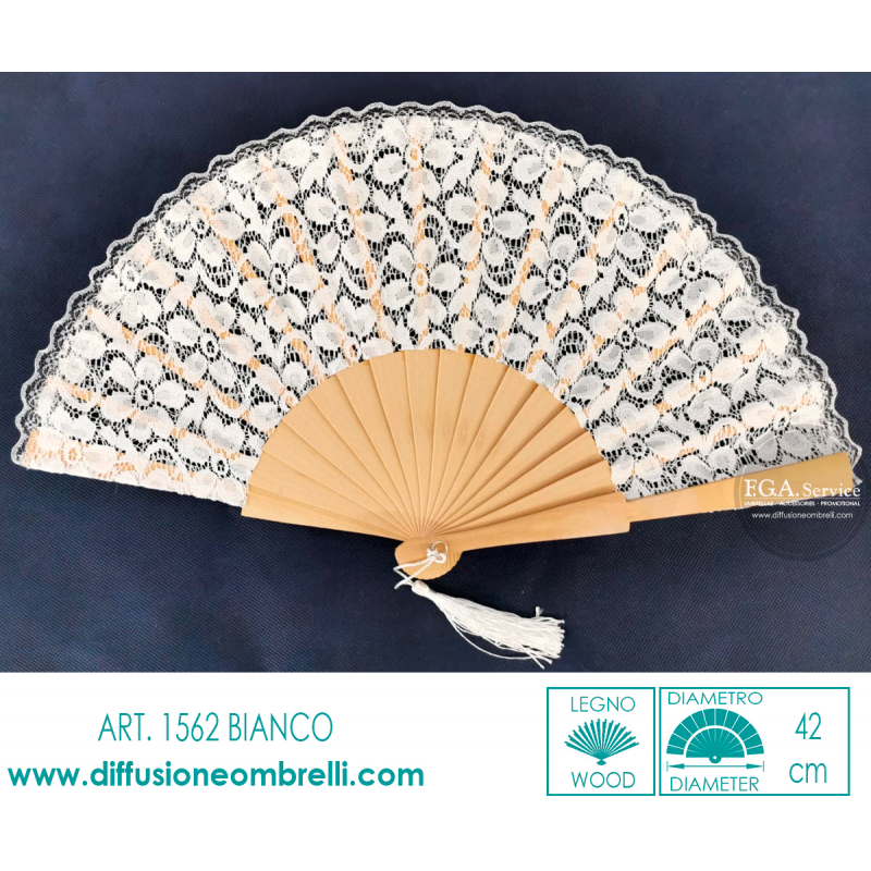 VENTAGLIO LEGNO E TESSUTO PIZZO BIANCO ART. 1562B