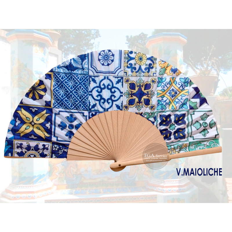 VENTAGLIO LEGNO E TESSUTO TEMA MAIOLICHE