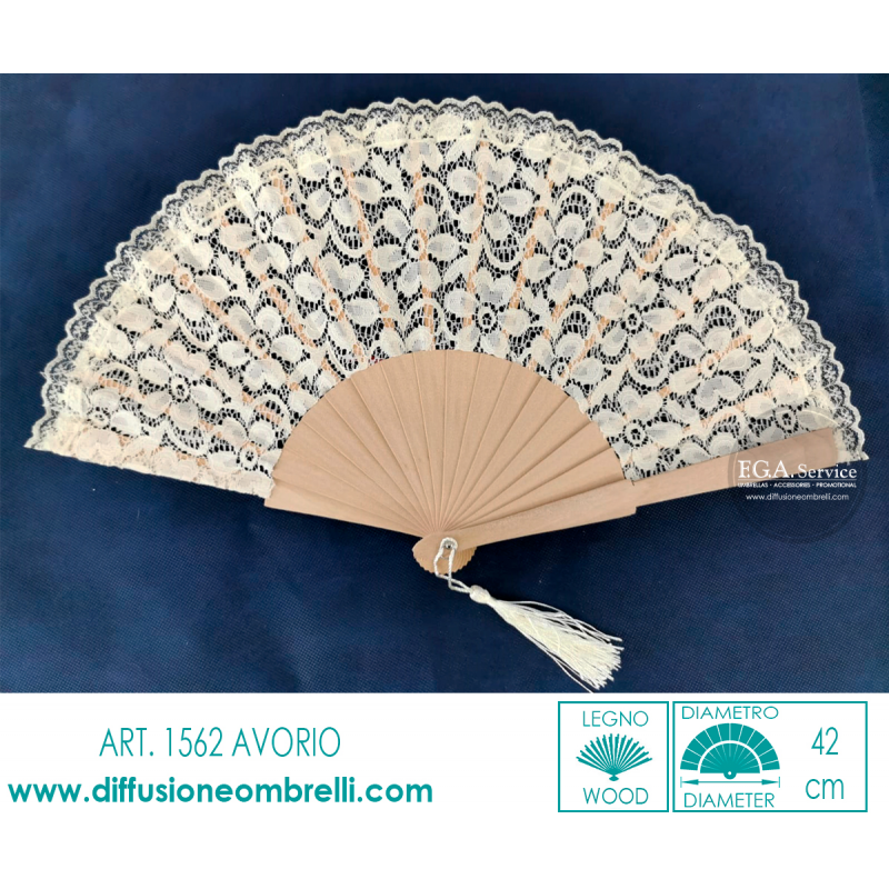 VENTAGLIO LEGNO E TESSUTO IN PIZZO AVORIO ART. 1562A