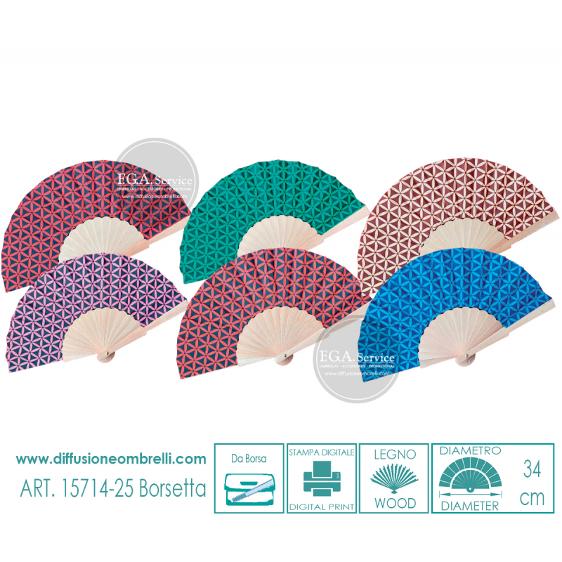 VENTAGLIO BORSETTA LEGNO E TESSUTO TRIANGOLI ART. 15714-25