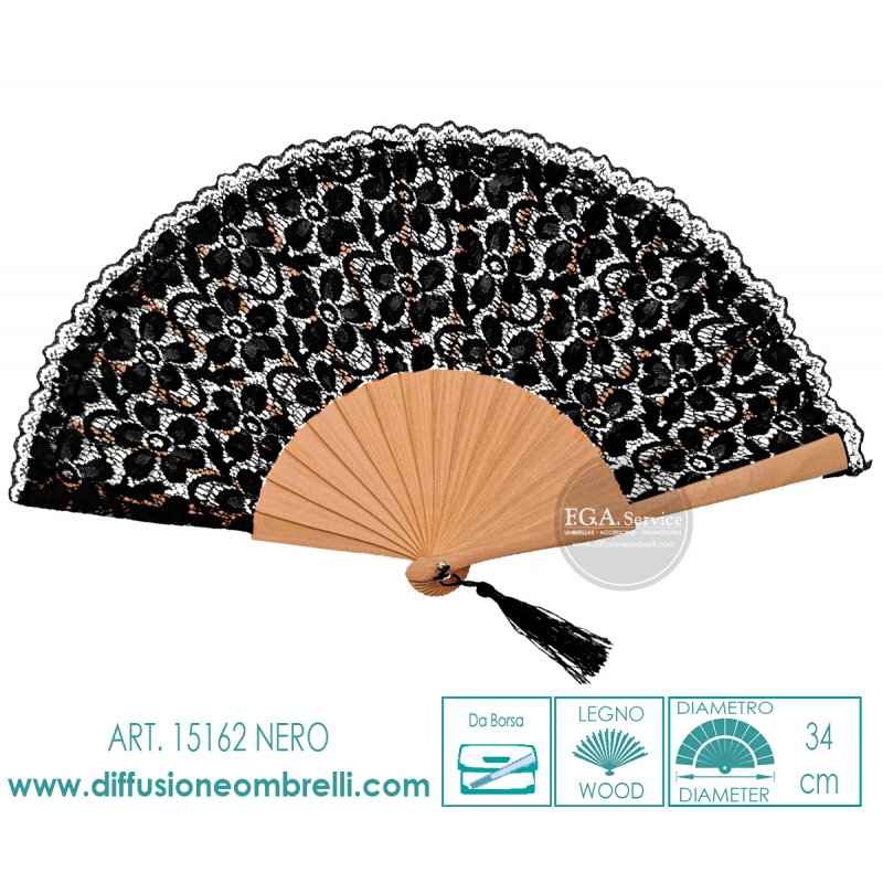 VENTAGLIO BORSETTA LEGNO E TESSUTO PIZZO NERO ART. 15162N