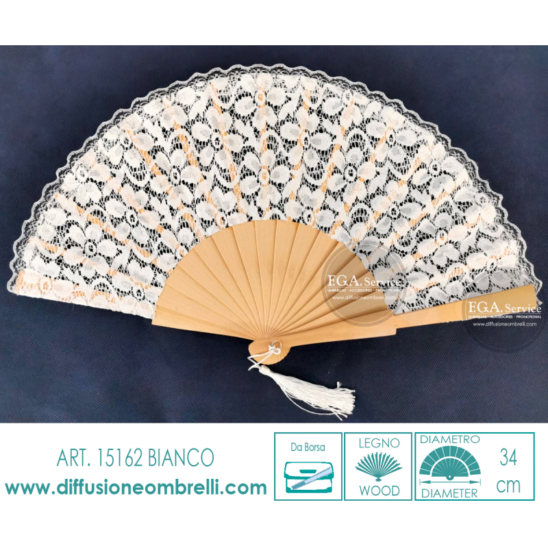 VENTAGLIO BORSETTA LEGNO E TESSUTO PIZZO BIANCO ART. 16162B