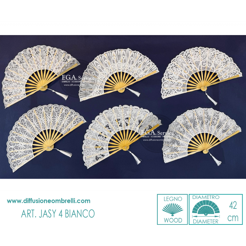 VENTAGLIO LEGNO E PIZZO ART. JASY 4 BIANCO