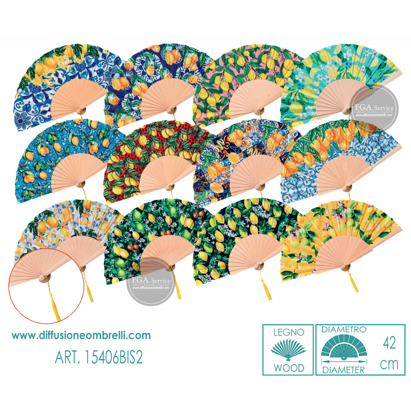 VENTAGLIO LEGNO E TESSUTO, STAMPE CON LIMONI, DIAM. 42 CM ART.15406 BIS-NEW