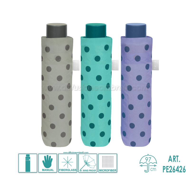 Ombrello Perletti Time Donna Pieghevole, 8 Bacchette da 54 cm in Fiberglass, Apertura Manuale, Asta in 3 Sezioni, Fantasia pois, Sistema Antivento, Tessuto in Microfibra ad Alta Resinatura