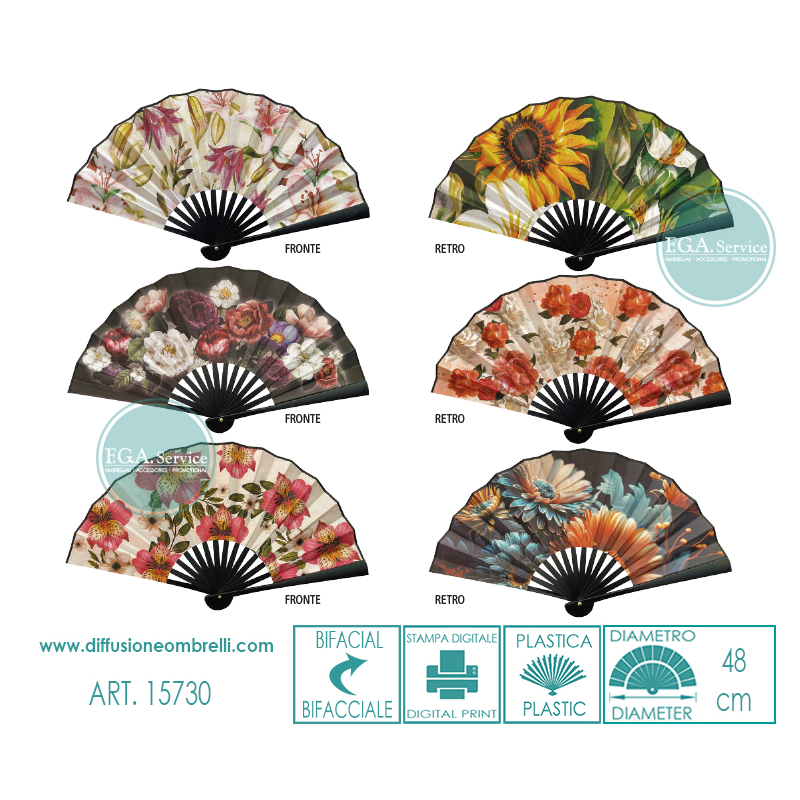 VENTAGLIO BIFACCIALE PLASTICA FIORI DIAM. 48 CM ART. 15730
