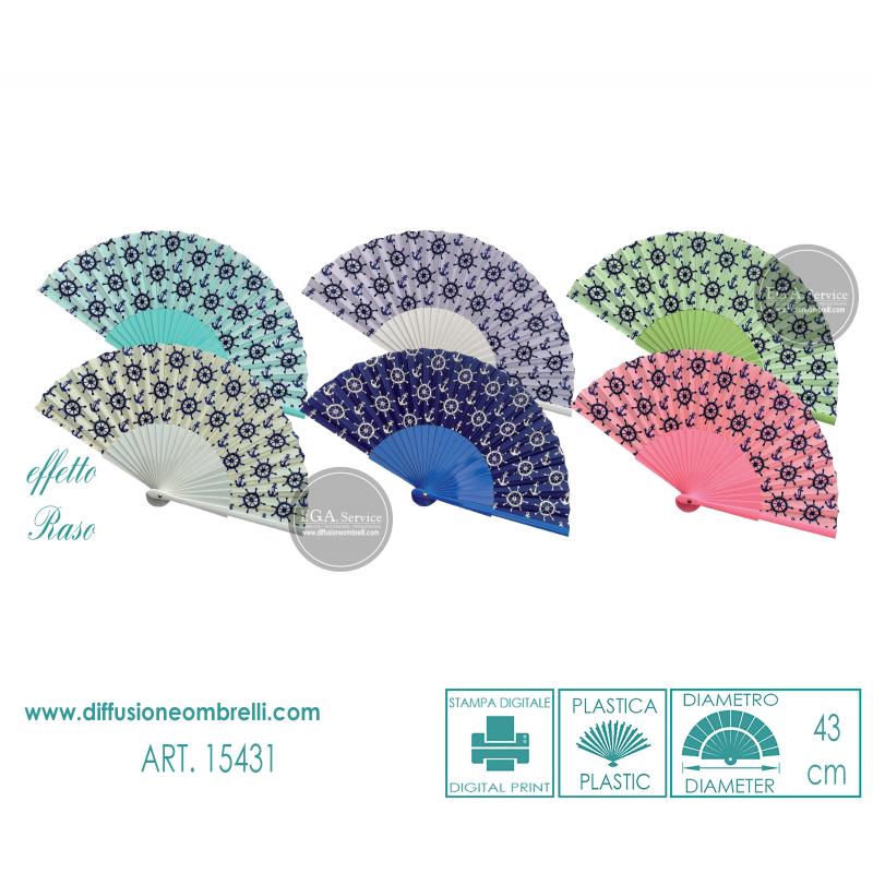 VENTAGLIO IN PLASTICA E RASO ANCORA 24 STECCHE ART. 15431