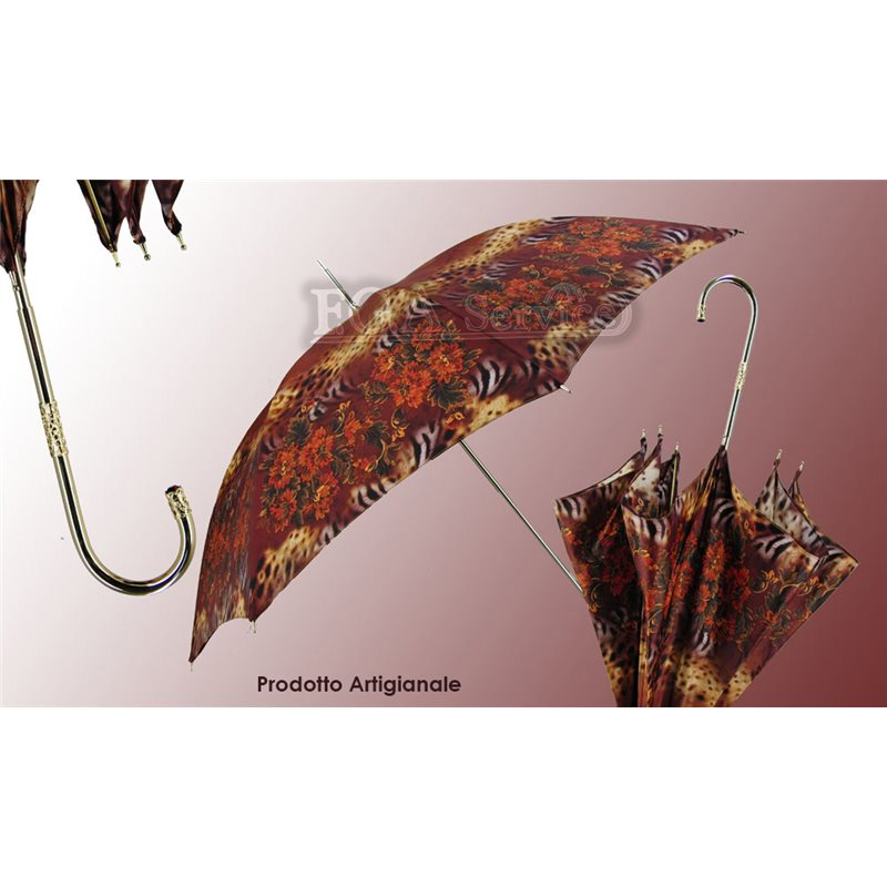 Ombrello Donna 61/8 Manuale, Asta dorata, Fantasia fiorata con metodo a stampa digitale su tessuto in raso, Manico ottone dorato con filigrana, Tessuto: Poliestere 100%, Lunghezza: cm 93, Apertura approssimativa: cm 104.