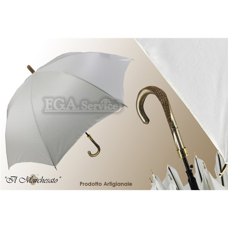 Ombrello Donna 61/8 Automatico colore Bianco,Asta in Acciaio Nero e bacchette in Fibra di Vetro Nero, Manico Foderato In Pelle e Camoscio colore Bronzo. La distribuzione e vendita all'ingrosso, in Italia e in Europa, è riservata a rivenditori del settore