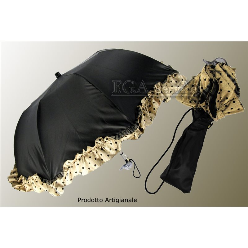 Ombrello Donna Mini 2 sezioni apertura automatica, con applicazione di volant beige, Colore: Nero, Massima tenuta al vento. La distribuzione e vendita all'ingrosso, in Italia e in Europa, è riservata a rivenditori del settore.