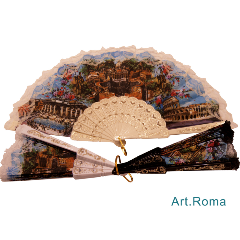 La Linea Ventaglio Roma è un Modello Ideale per Vacanze e Turismo. Disponibile nei Colori Bianco, Nero, Beige. La vendita all' ingrosso ventagli è riservata a rivenditori del settore.