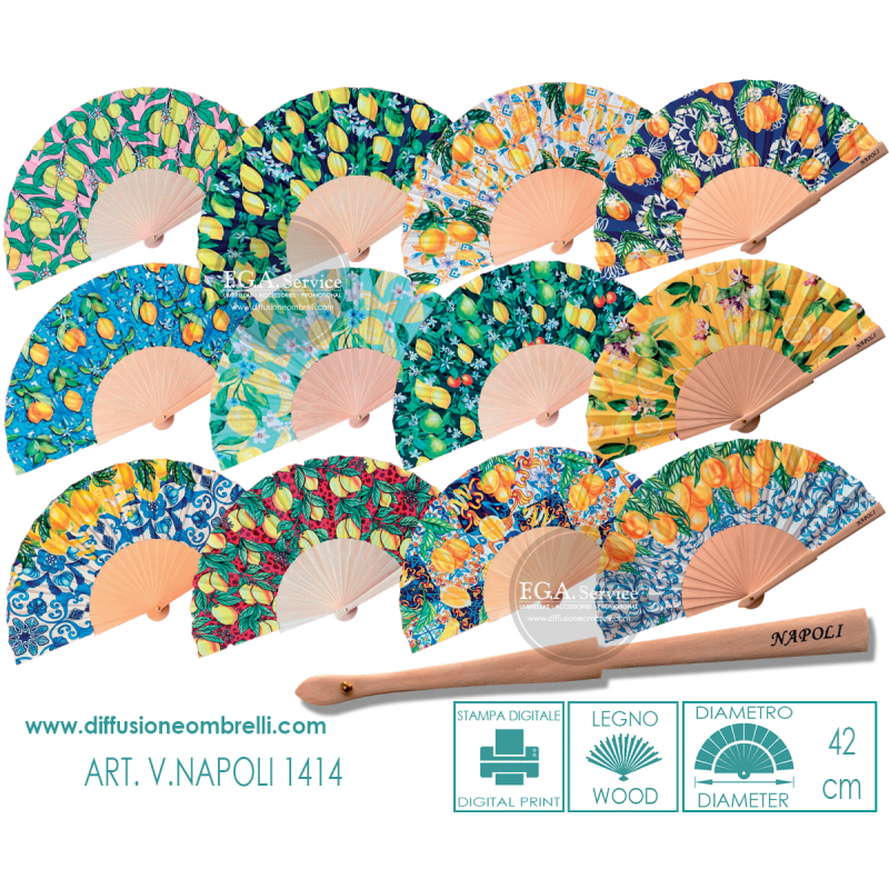 Ventaglio diametro cm 42 legno e tessuto, stampe con limoni,...